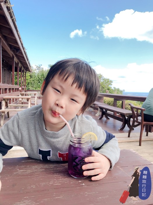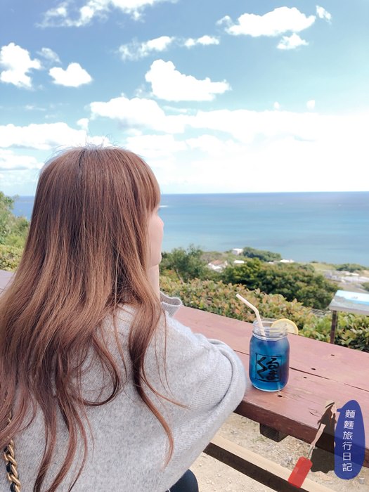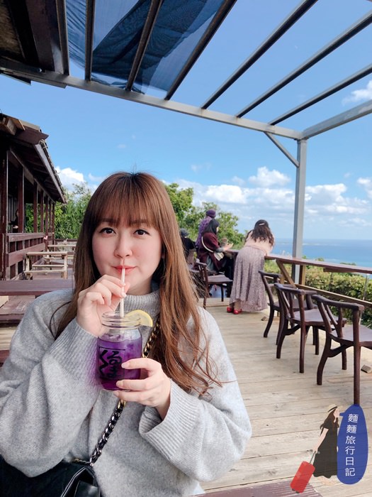 還點了一杯蝶豆花檸檬口味的飲料,這杯沒有氣泡,喝起來很像檸檬水😂,漸層藍色跟沖繩漸層藍是不是很相襯。
