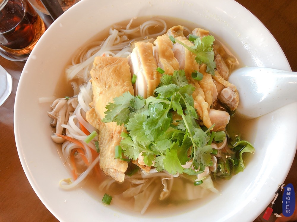 我們還點了一碗泰式雞肉河粉,我覺得這碗表現很普通、湯跟泰式河粉湯的清甜不一樣,味道滿奇妙的,原本是想比較清淡,點給波仔跟樂樂吃,但是河粉有點難咬,不太適合給小朋友吃,So…不推薦河粉類餐點。
