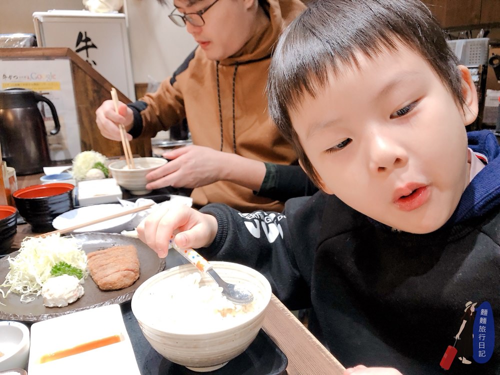但是白飯太多,樂樂一個人還沒辦法吃完,炸牛排好吃到樂樂不停的說好豪吃喔~這樣!嗚嗚~媽麻也覺得很好吃,在福岡吃完炸牛排後就一直很想念這好吃的炸牛排啊~~~
