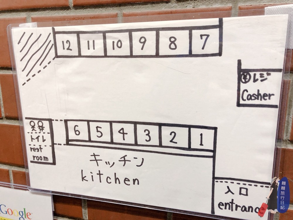 炸牛排本村上野店餐廳不大滿小的,座位也比較少喔!牆上還有貼店員手畫的餐廳配置圖,雖然簡單但是位置都看得很清楚,一目了然。