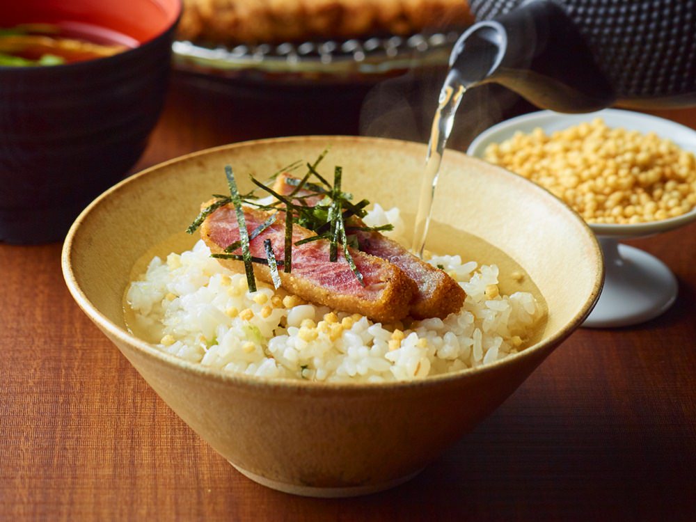 另外還有台灣限定高湯茶泡飯套餐,除了套餐的白飯可以免費續加外,白飯也可以換成茶泡飯,跟炸牛排一起吃,喔摸喔摸~我最愛日本的茶泡飯了說,大家可以先吃麥飯配炸牛排、第二碗續加的時候跟服務生說要換成茶泡飯,一飯兩吃,茶泡飯上會放上蔥花、麵麩跟炸牛肉,淋上高湯後撒上海苔,聽起來就很美味!村長最愛的茶泡飯吃法是一定要加一點哇沙米提味啊!炸牛排本村推薦美大家。