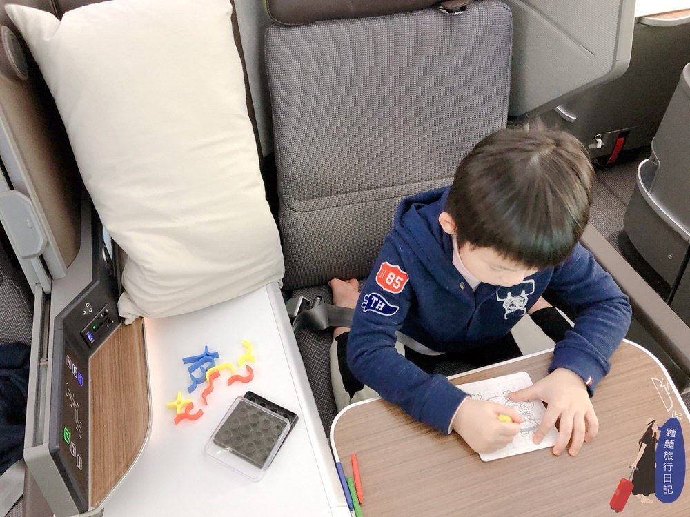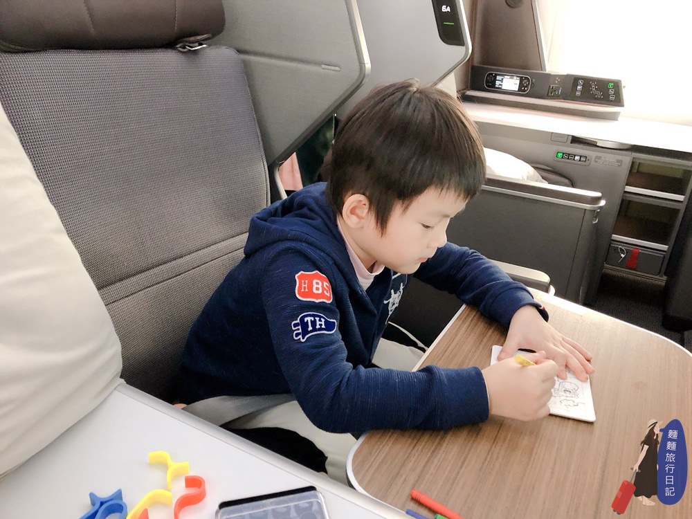 村長的秘密武器就是帶玩具、書本等,可以讓他們兩打發時間、安靜玩玩具、畫畫、看書,波仔一開始畫畫,就會非常專注,從台灣到日本飛程並不長,所以搭飛機的時候還是會安靜乖乖坐自己的事情,咻一下就降落了呢~~~