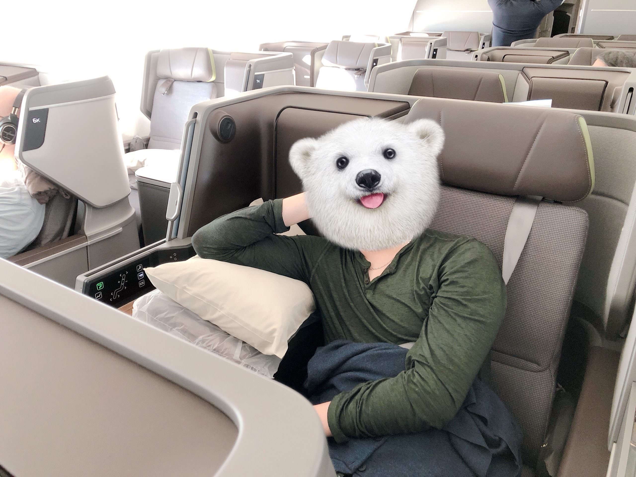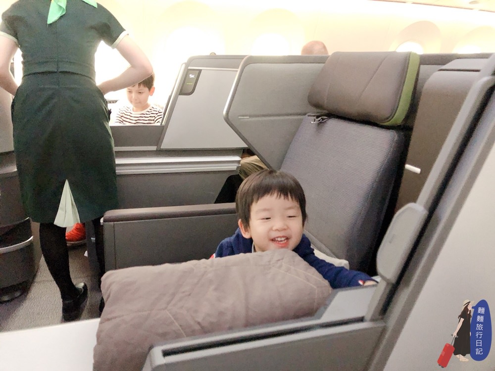 我跟樂樂坐在大猴跟波仔前面,你看看這個座位這麼大,這個座椅可是BMW團隊設計、一張要價500萬的飛機坐椅,光是聽起來就覺得猴賽雷了,一上飛機空姐就會服務超好的送上迎賓飲料(可以選)跟熱毛巾,雖然起大早大著一堆行裡跟兩個小屁孩來搭飛機,累呼呼,但是現在村長起毛雞啵兒棒~