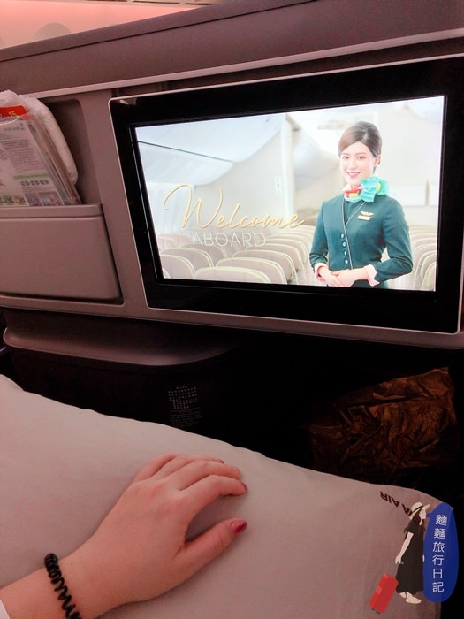商務艙的座位上都會有小抱枕跟機上室內拖鞋,這就是為什麼我說坐787夢幻客機有一種回到家的港覺,超放鬆超舒服捏~回家還沒有空姐可以服務我,都是老娘在服務大猴那位爺跟忙碌小孩。