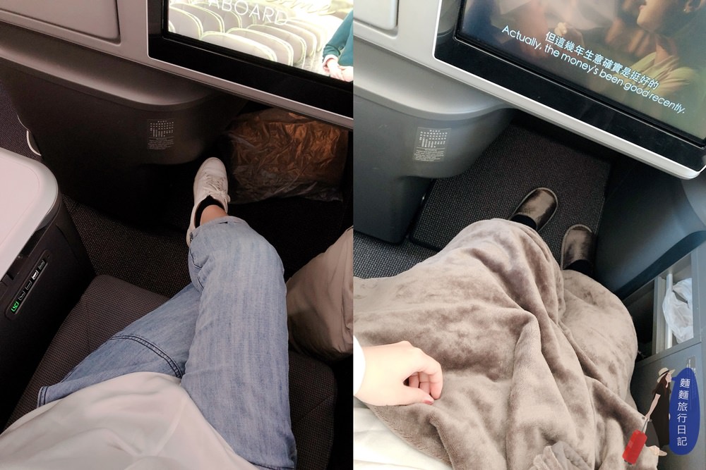 坐下後,腳下空間非常大,我很大一隻每次坐飛機都覺得最位非常窄,這雙腿根本無處可安放,所以每次搭飛機都非常不舒服,沒地方伸展姿勢不良,下飛機都覺得腰酸背痛,搭787客機完全沒有這個困擾,村長跟大猴長地比較大隻,我們坐完全沒有腳很憋屈擁擠不舒服的感覺,你們看搭飛機腳下空間超大,我腳伸直還有空間,而且坐位規畫了很多置物空間,像我腳旁邊就是置物櫃,我把鞋子放在置物櫃裡面,大家下飛機記得換回來捏,不要穿著機上室內脫就下飛機了蝦~~