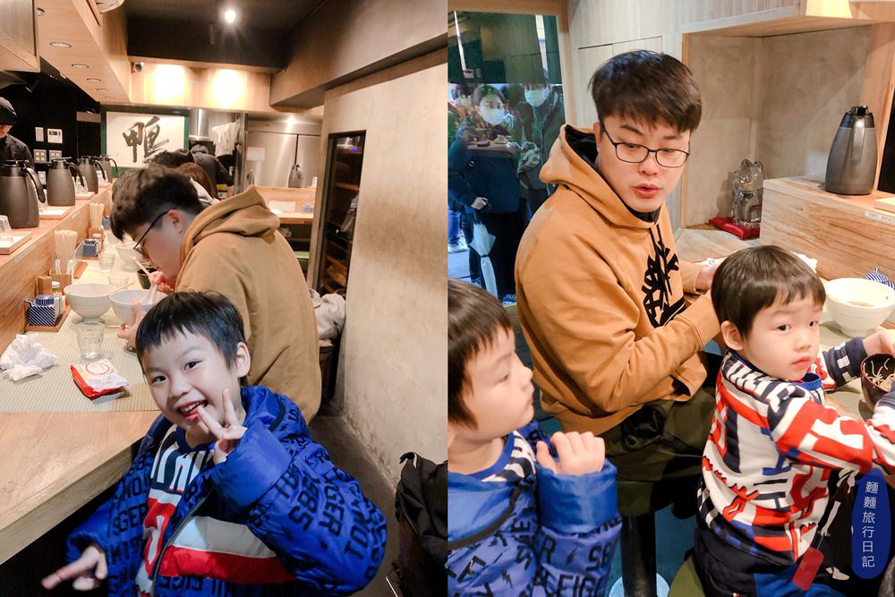 因為店內位置太少所以我們只能分開坐!大猴跟樂樂坐在一進餐廳的前2個座位,我跟波仔則是坐在比較裡面!有看到外面排隊的人虎視眈眈盯著餐廳裡嗎,壓力好大啊~~~(話說剛剛自己明明也死八八的盯著店裡用餐的人XDD),吧檯上都有放茶水跟小盤子可以自行拿取,桌面上有放柚子胡椒跟店家自製的辣粉,可以依個人口味自行做添加。