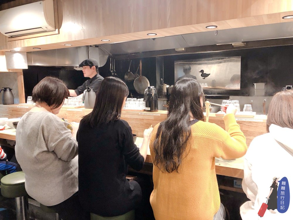 店裡都是吧檯坐位區喔,而且只有11個座位,吧檯區對面就是煮拉麵的廚房區啦,可以直接看到師傅再煮拉麵!店裡面到處都可以看到鴨to蔥拉麵可愛的鴨子LOGO,用可愛這個形容詞好像不太妥當,因為可愛的鴨子等一下就要被我們吃下肚了😅。