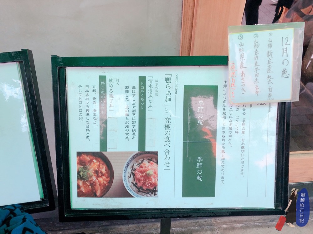 東京上野必吃美食濕貝秀口味拉麵らーめん 鴨to蔥拉麵,上野超級有名超人氣拉麵店らーめん 鴨to蔥拉麵號稱是東京必吃5大拉麵之一,不像其他日本拉麵主打濃郁濃厚豚骨湯,這間拉麵店的高湯是用鴨熬製而成,湯頭標榜清爽、味道濃郁爽口,鴨肉是漂亮的玫瑰粉紅色,這碗拉麵光用看的就很賞心悅目了,點完拉麵後店員會問妳要哪種蔥,有三種蔥可以選,分別是丸太白蔥大蔥塊、紅洋蔥跟蔥花,另外除了拉麵之外也可以選擇搭配套餐有親子丼或鮪魚丼飯!