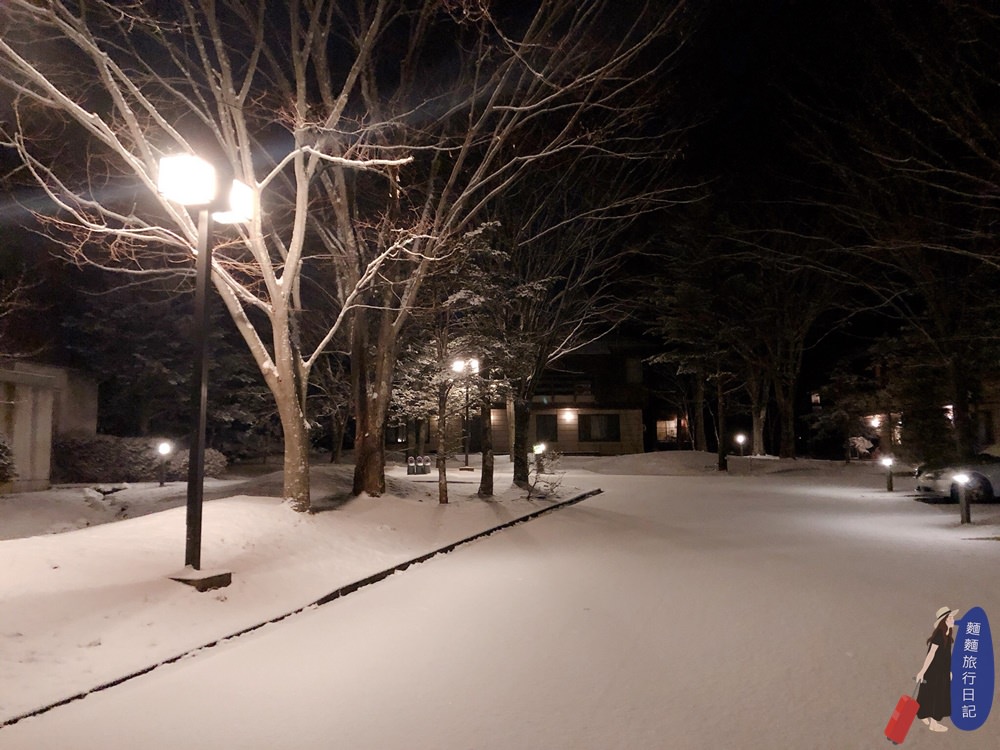 下雪的輕井澤萬豪酒店已經看不到原本的地面了,世界都被白雪覆蓋,晚上跟白天感覺完全不一樣,晚上很安靜,雪白的世界彷彿時間靜止一樣。