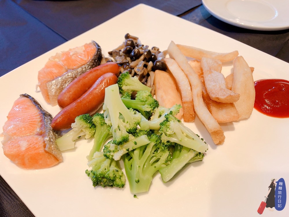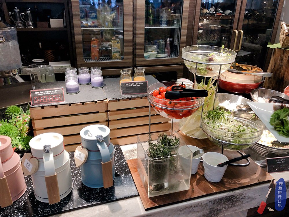 早餐種類很豐富,主要分西式早餐與日式早餐,生菜沙拉區,青菜跟小番茄看起來都很新鮮、很像早上直接從田裡拔出來的生菜。