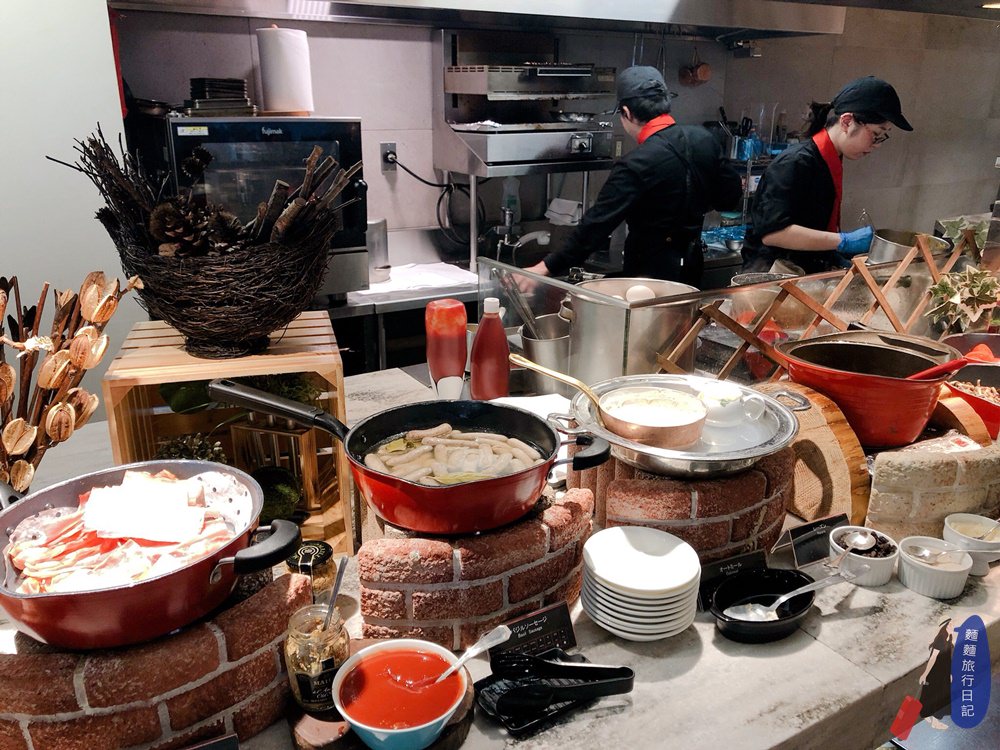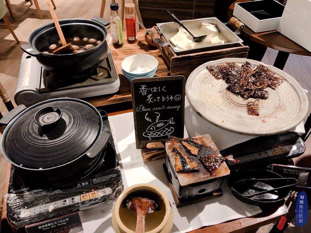 日式早餐區比較吸引我,白粥跟烤秋刀魚,想吃烤魚的可以把烤魚夾到下方的小烤爐加熱,烤魚上面的醬料甜甜鹹鹹,上面灑滿白芝麻,很香很下飯根本是白飯小偷,另外也有烤鮭魚喔。