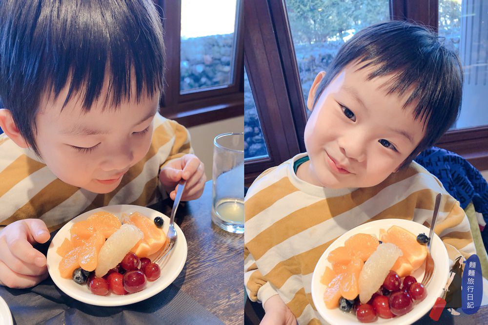 我裝了滿滿兩盤水果給波仔跟樂樂吃,兩個人一人吃一盤水果。