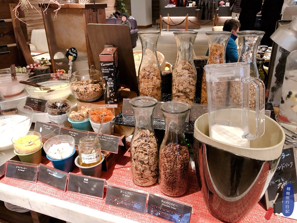 牛奶麥片區大概就是波仔跟樂樂最愛的區域,麥片種類很多選擇,除了牛奶還有果乾跟蜂蜜可以添調牛奶裡,想吃什麼就加啥的概念。