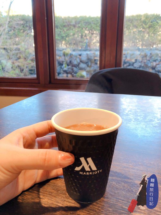 吃完早餐後,我們用桌上的紙杯裝了熱飲走回北館的房間,外帶的話有附杯蓋。