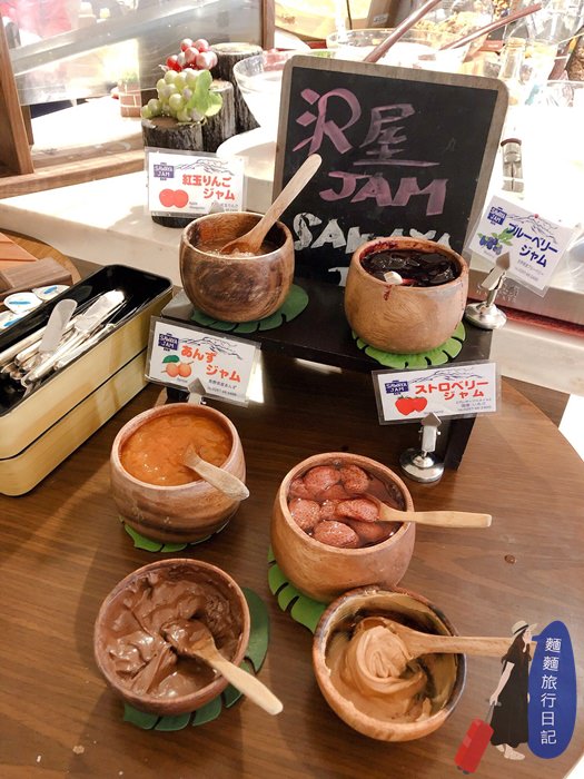 萬豪酒店自助早餐提供的果醬可是輕井澤必買伴手禮、超有名的沢屋果醬,沢屋果醬強調不加任何添加物,依照每個季節的水果製作出當季的果醬,而且每種果醬裡都吃得到果肉,看草莓果醬可是貨真價實的一整顆草莓啊,大家可以先在酒店吃吃看沢屋果醬,看喜不喜歡、或哪個口味好吃,再去買喔。