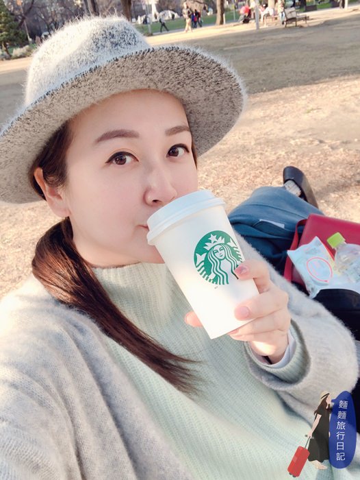 我跟大猴輪流顧小孩,輪到我下崗換大猴趕快坐下來休息喝杯熱可可壓壓驚,雖然天氣很好,但是冬天還是很冷啊!