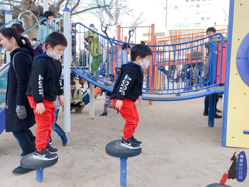 在日本錦系公園兒童遊戲區玩,遊樂區如戰場,要在這裡生存可是沒這麼容易的,只好夾縫中求生存了!看哪個設施沒人寵幸,趕快跑去玩。