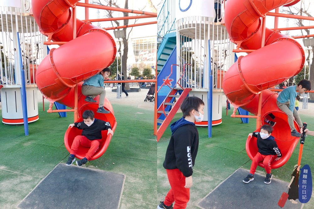 終於滑下來了,小孩太多容易找不到自己的小孩啊🤣🤣🤣,話說上面那位日本小孩太猛了,溜滑梯太多人乾脆不在溜滑梯道上滑嗎???在上面滑??? 很危險啊!千萬不要模仿。