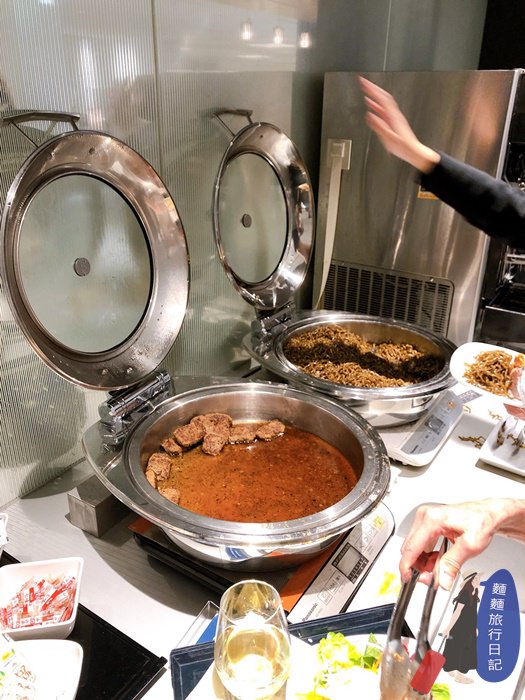 還點了兩碗豬肉拉麵,湯頭很濃郁,表現中規中矩,拉麵當然跟日本街頭拉麵店無法比較,但是就貴賓室裡提供的熱食來說,還可以。