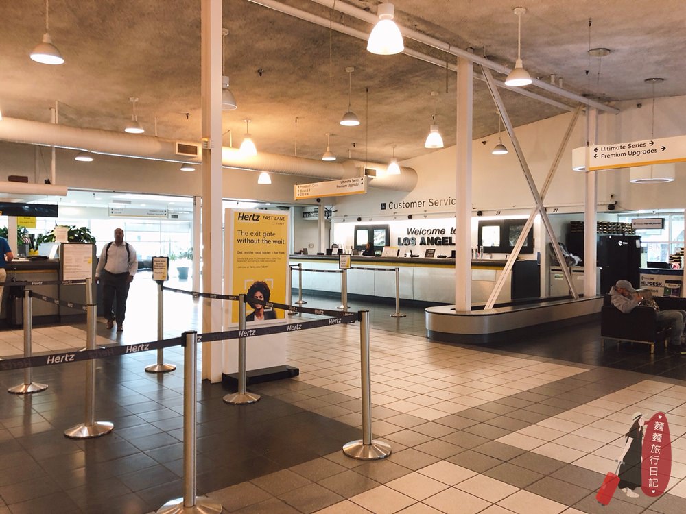 機場外圍的這間Hertz超級大間,超多櫃台,旁邊甚至還有一整排的快速租車機器Kiosk,如果有美國駕照的旅客,可以利用Kiosk輸入資料,掃描駕照,用電話和客服人員通話辦理租車,省時又方便,我們是第一次來LA當然是選擇臨櫃服務,辦理租車手續所需資料如下: