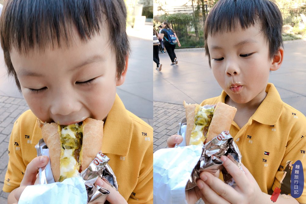 玩不到一個小時就狂喊媽咪,我肚子餓!!!男孩們的伙食費就是如此驚人啊,趕快買了一個熱狗堡給波仔跟樂樂止餓,補充體力,樂樂吃完之後已經體力不支睡著了,完全就是吃飽睡的概念。