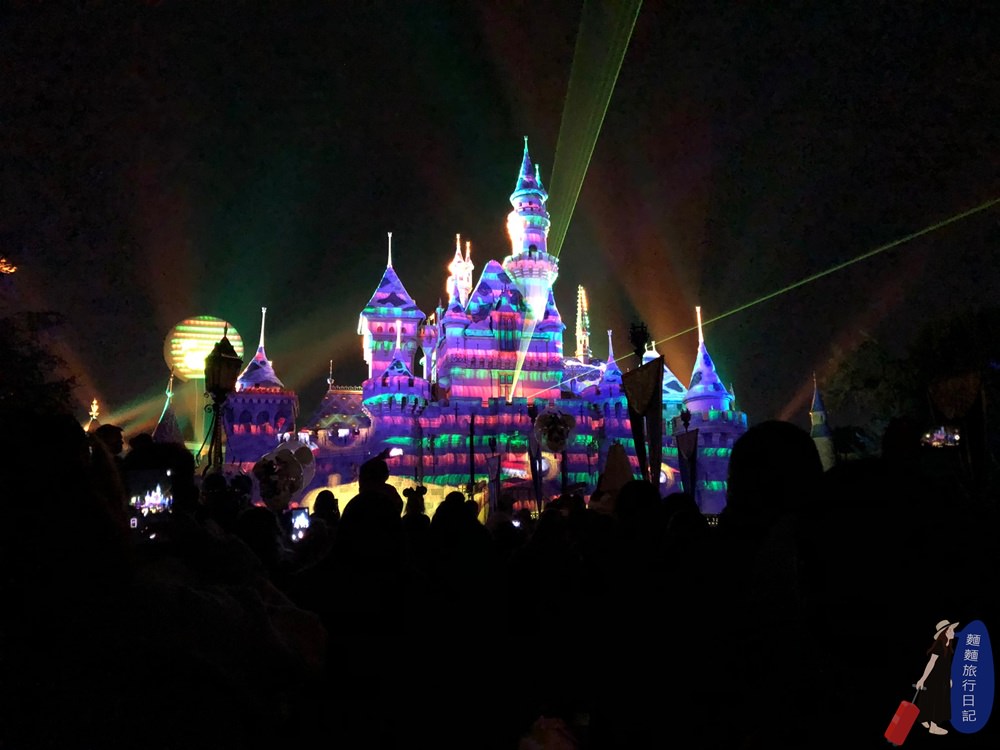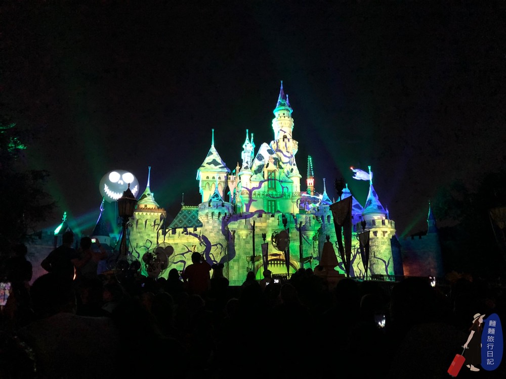 時間差不多的時候就可以準備去程堡前面卡位欣賞燈光秀了,今天是萬聖節主題的特別節目燈光秀!
