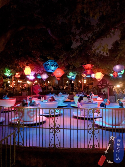 村長一家拖拉的習慣不改,所以其實我們吃完早餐後到迪士尼已經中午啦!可以說是下午才開始玩,所以很快就天黑了,晚上的旋轉咖啡杯也好漂亮,燈籠都亮起來了呢!晚上有不同的Fu~