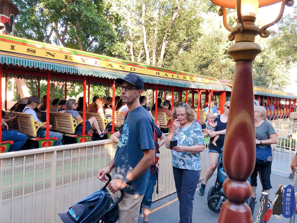 想說樂樂睡著了,那我們就去美國大街搭迪士尼樂園鐵路,這是真正的蒸汽動力火車喔!