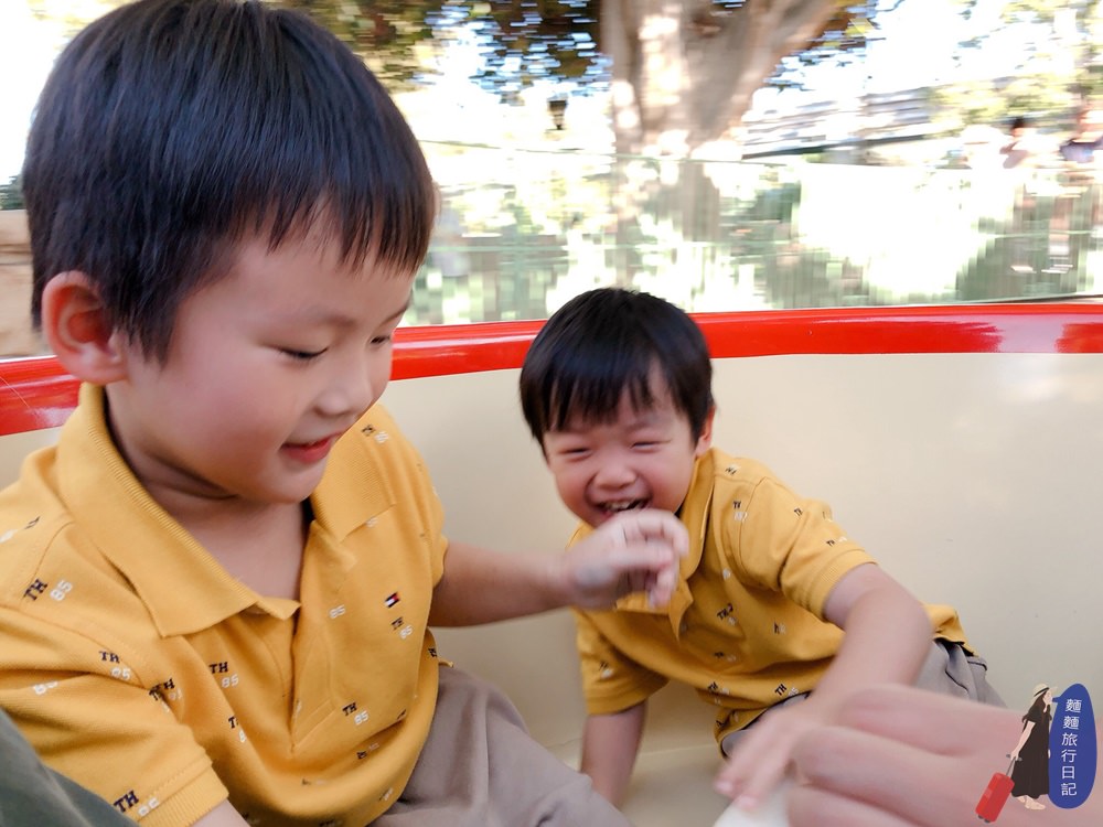我們先去搭乘凱西小馬戲團火車,兩個小男孩就是不會想玩旋轉木馬,他們更愛火車啊、汽車啊、飛機啊這種遊樂設施,既然他們想玩村長只好乖乖來排隊了。