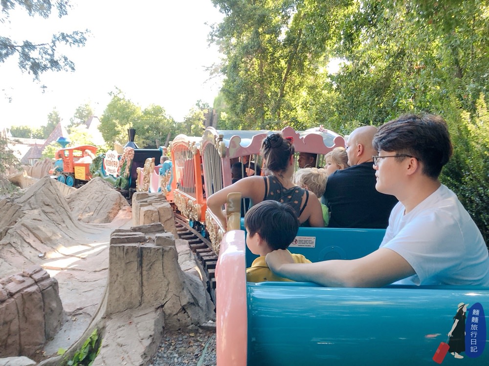 這個遊樂設施其實是乘坐著火車展開迪士尼之旅的童話旅程,搭乘火車旁邊的風景都是縮小過後的迪士尼經典電影裡面的場景。