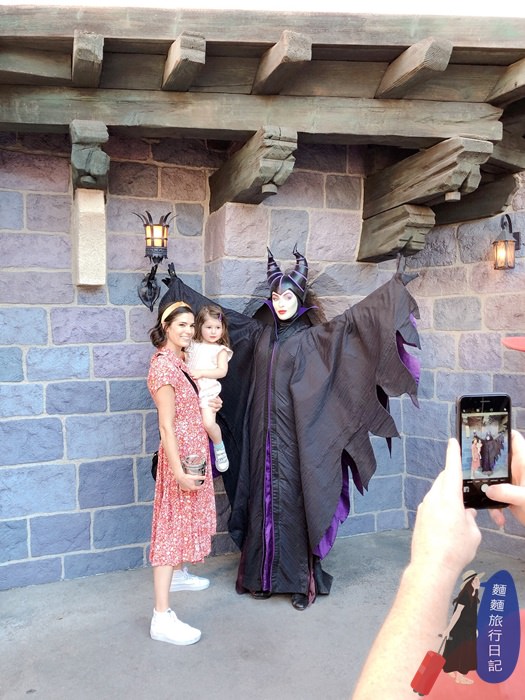 在園區裡面時不時會看見迪士尼系列的角色出現,跟大家合照!沒有看到壞皇后卻遇到黑魔女,妳們看那個臉就是壞皇后對吧!打開手機APP也可以看到哪個角色會在哪裡出現喔!