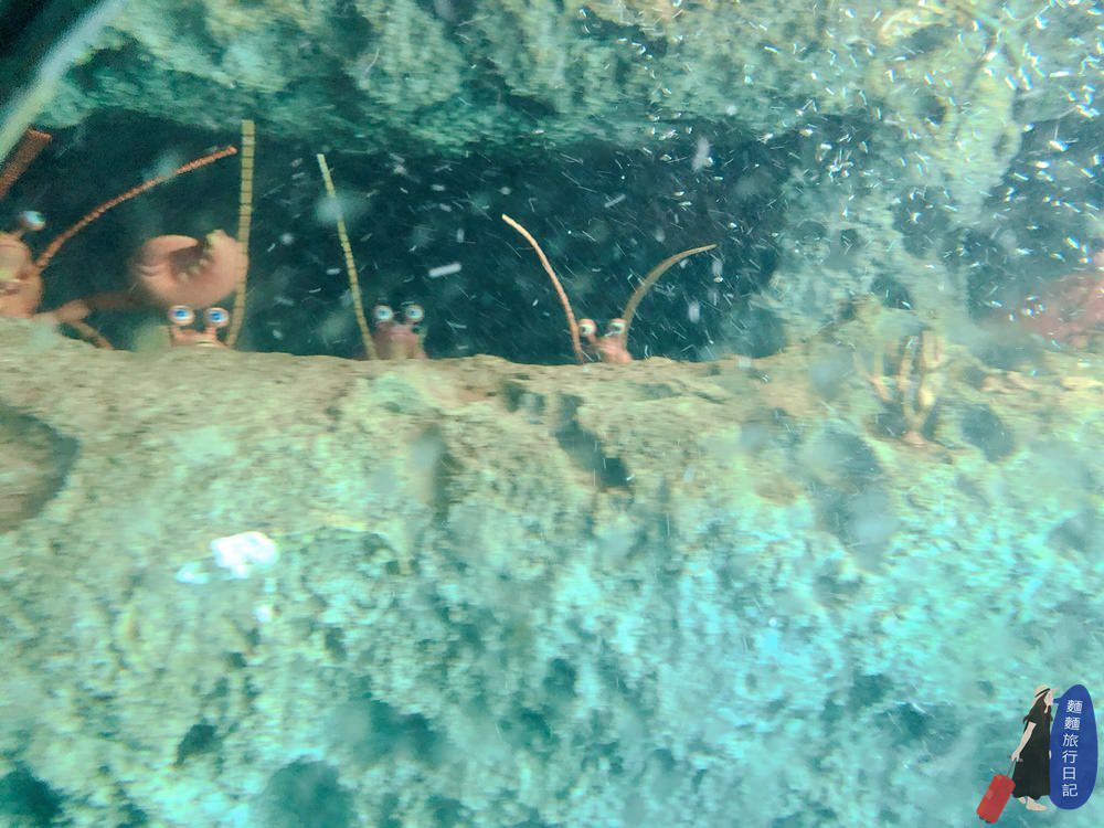 發現一整排躲在石頭後面的螃蟹跟大蝦子,樂樂一直轉頭跟我說是蝦蝦!是蝦蝦!恩…這孩子最愛吃蝦了,看到蝦他是餓了嗎???我們才剛吃完早餐欸孩子,這趟旅程除了有許多海底生物之外,電影裡的主角也全員到齊囉!超好玩!波仔跟樂樂超喜歡,親子超推!