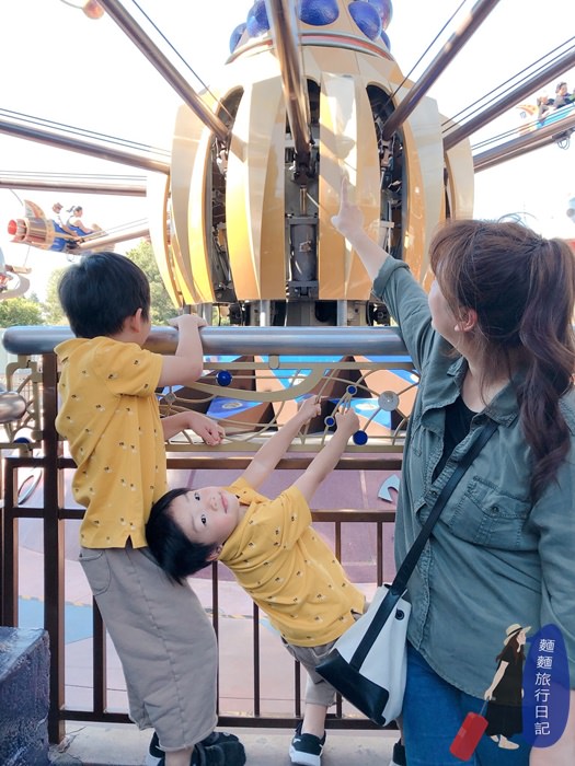一進園我們先去明日世界區,波仔跟樂樂表示媽咪我想玩這個,那就去排隊吧!