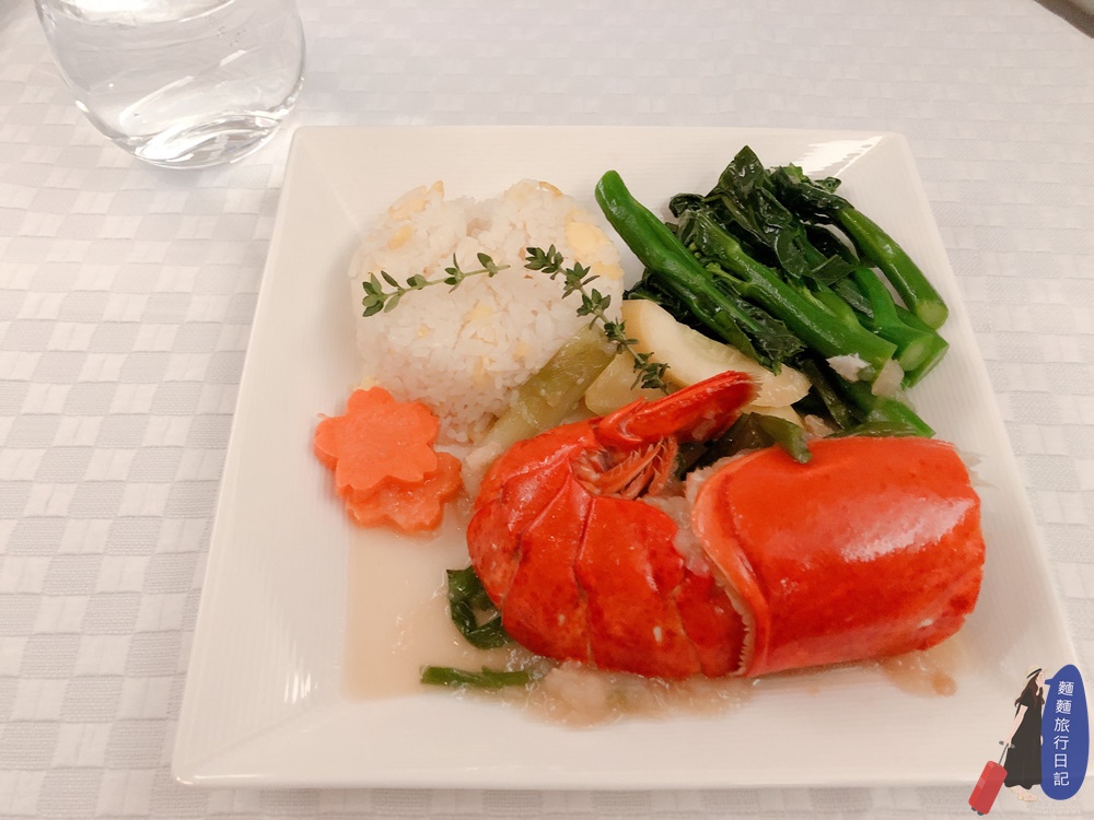 主餐我選的是隱藏菜單的龍蝦啦!沒錯不要懷疑,是真的一隻龍蝦有夠氣派,隱藏菜單總類滿多,真的值得上去逛一下,你們看看村長就在機上嗑了一隻龍蝦捏~~~爽!