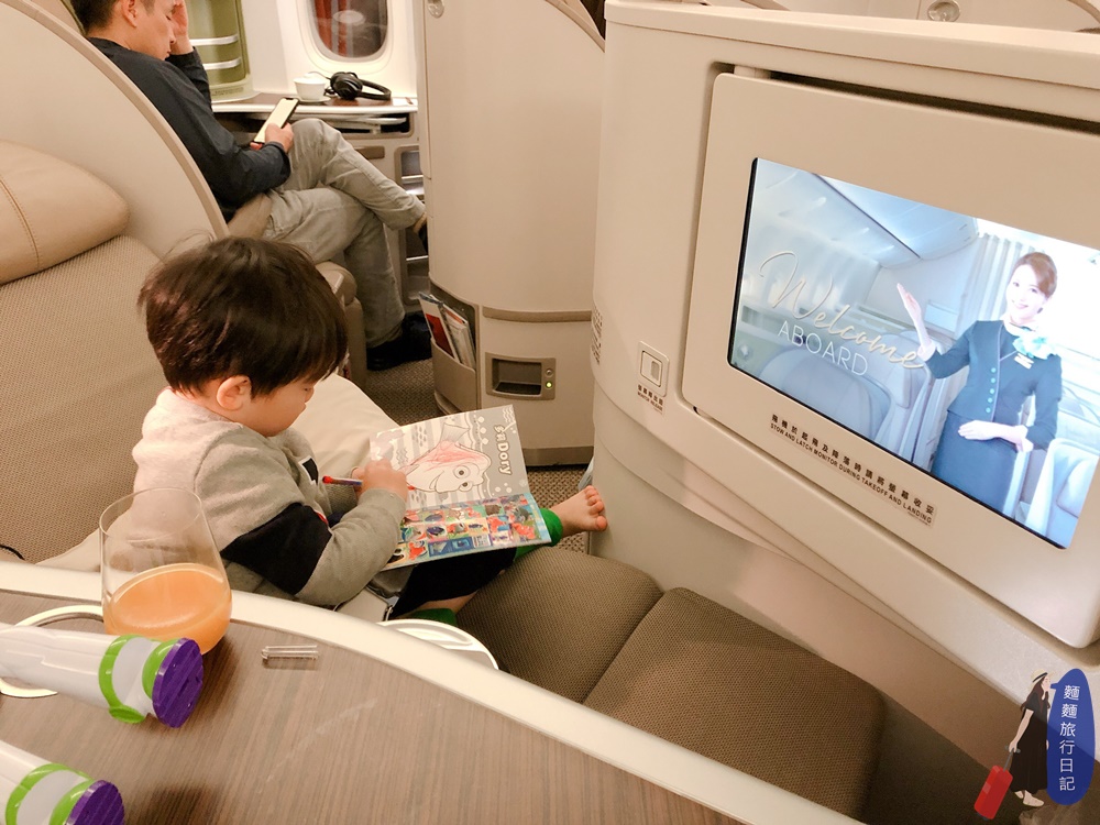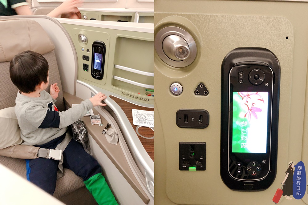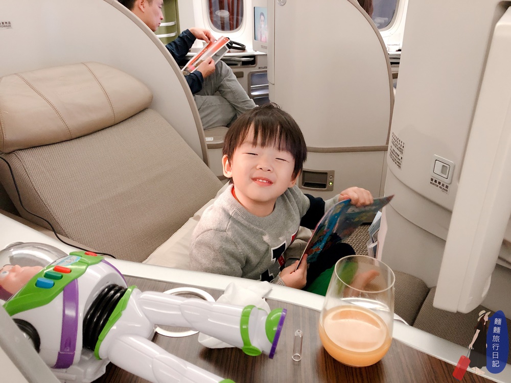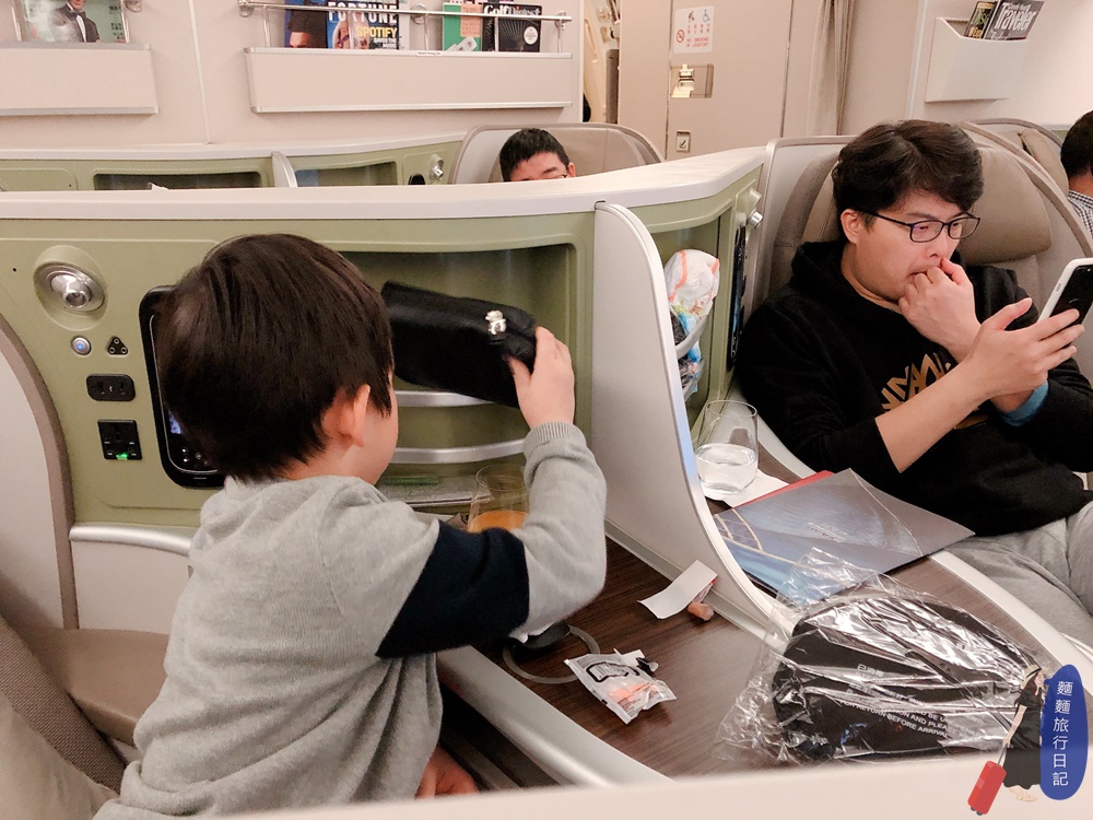 長途飛行真的很推薦長榮的皇璽桂冠艙,座位空間非常大,一排只有四個位置,是1-2-1的座位,座位採反魚骨式排列,我們一家四口劃的位子是中間兩個座位前後兩排。不過每個航班所配置的機型都不一樣!像我們村長從台灣搭到洛杉磯、再從舊金山飛回台灣、跨年從台灣搭到日本東京,這三次的皇璽桂冠艙都是不同的班機,我最喜歡的是飛日本東京那趟的長榮航空波音787夢幻客機~~~