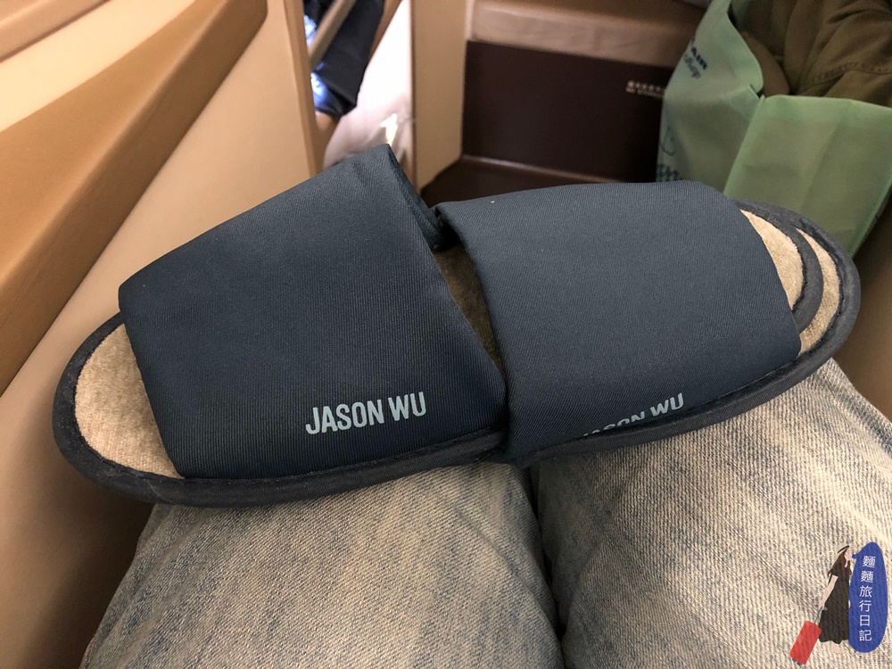 跟國際設計師Jason Wu設計的雞上拖鞋,我覺得長榮的機上拖鞋都很、好、穿、很多人都會帶回家穿呢!