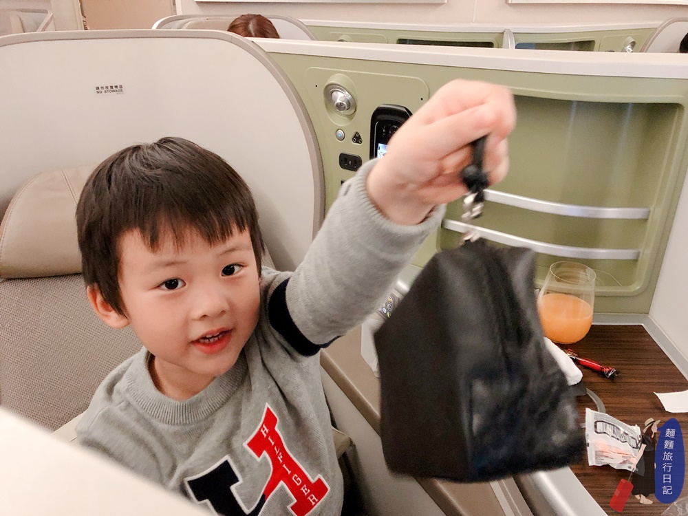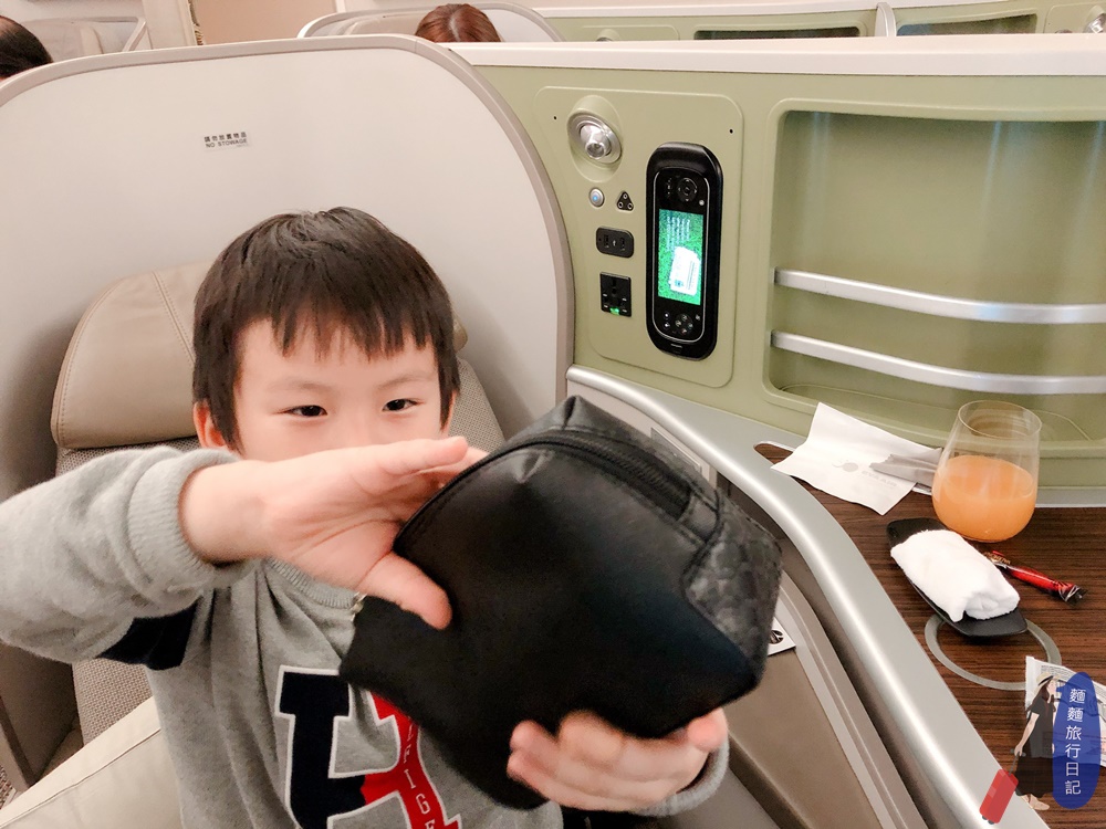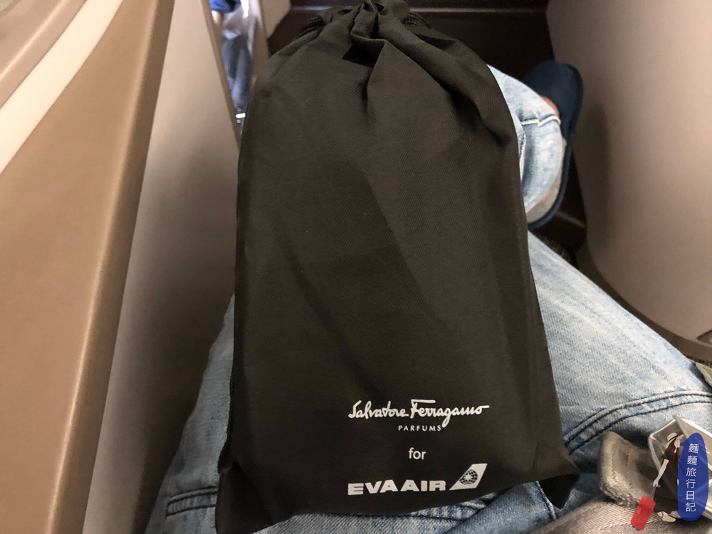 因為是長途飛機,上飛機就會發過夜包,過夜包裡面有簡單的肌膚保養旅行組跟牙刷等,還有眼罩、耳塞!
