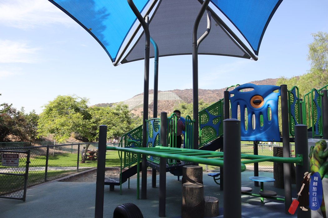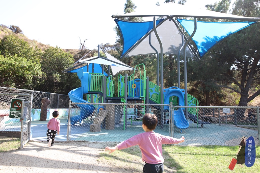 LA的遊樂設施超級貼心,還有棚子可以遮陽,加州的太陽很大很熱情啊!雖然我們去LA的時候天氣微涼晚上會冷,但是太陽還是很大很曬,有棚子就不怕小孩曬了。