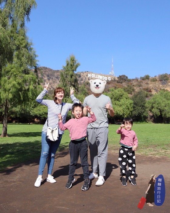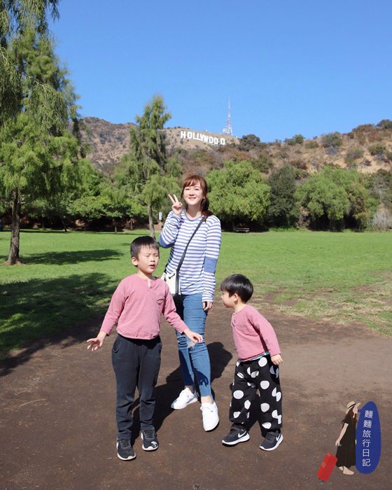來LA沒有跟好萊塢標誌拍照的話,不就low掉了嗎?!所以不免俗要來跟Hollywood標誌打卡拍照一下啊!HOLLYWOOD標誌起源於1923年,當時全名是HOLLY WOOD LAND,原本是房地產的宣傳廣告,只是後來好萊塢電影快速崛起,標誌無意間起了代表性作用,後來逐漸損毀剝落,1978年在《花花公子》雜誌創辦人的推動募款重修,每一個英文字都有一位捐款者,成為舉世聞名的地標。其實有很多地點可以跟好萊塢標誌合照,但帶著兩隻半獸人不可能爬山涉水只為拍標誌照,所以上網爬文後決定到好萊塢湖公園  Lake Hollywood Park ,標誌不用 Zoom in 就很清楚明顯外、開車就能到,而且旁邊還有一個小巧的兒童設施,拍完照後還可以讓波仔跟樂樂放電一下,內文也會分享隱藏拍照地點唷!看過來~~~