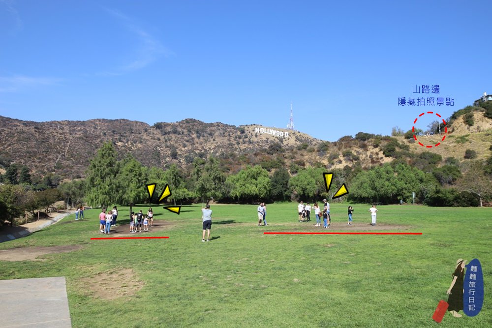 將江~到囉!Hollywood九個字母,超級清楚~而且公園還有綠地,對有帶小孩的村民們來說,安全又好拍攝。
