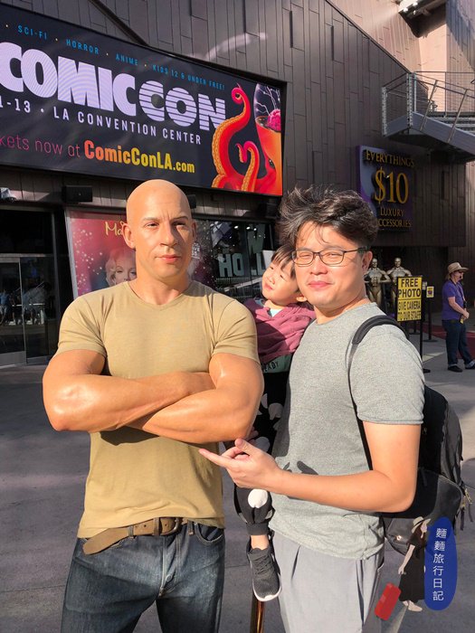 蠟像真的超級逼真,馮迪索就做得很像真人啊!樂樂看得目不轉睛,他大概分不出來這是真人還是蠟像,有興趣的人可以買票進去參觀喔~