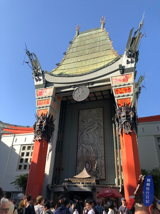 杜比戲院不遠就是中國戲院 TCL Chinese Theatre ,中國戲院是 1927年啟用,原本奧斯卡金像獎曾一度在此舉辦,2002年以後才移轉到附近的杜比戲院,設計一看就很中國,感覺就是阿兜仔眼中的中國風,是由兩根珊瑚紅色的巨柱挑起銅頂,門口還守候著兩隻巨型石獅,超級多觀光客。