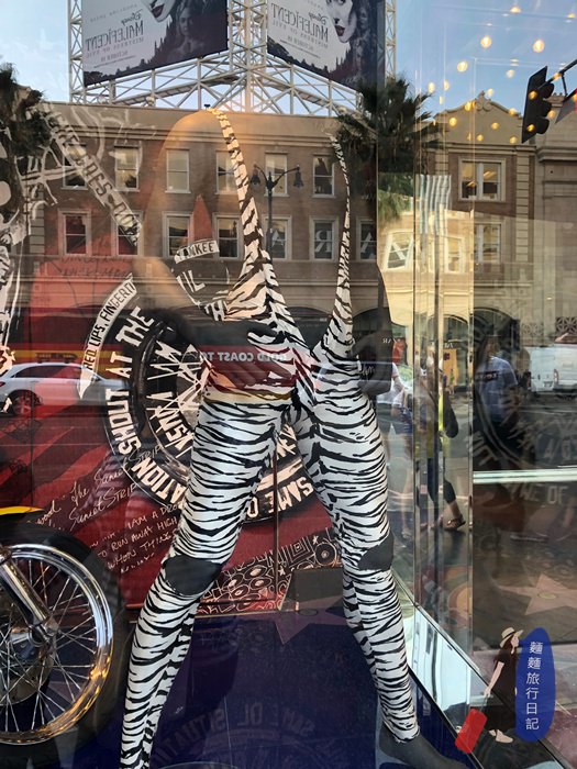在LA市中心,從星星大道 Walk of Fame逛到杜比戲院 Dolby Theatre 、中國戲院TCL 跟杜莎夫人蠟像館Madame Tussauds Hollywood,在這裡感受到滿滿、濃厚的美式文化,就連去中國戲院,都會覺得那是美國人眼中的中國式的感覺,不論紀念品或是蠟像館,就連賣衣服的店都賣一些奇裝異服,像是這件褲子就是逛一逛覺得好酷喔~就隨手一拍~~~我們一家四口像是劉姥姥進大觀園,不管看什麼東西都滿心期待,覺得好新奇喔!大家記得來LA走走看看,要注意很容易被扒東西,大家自己小心嘿~