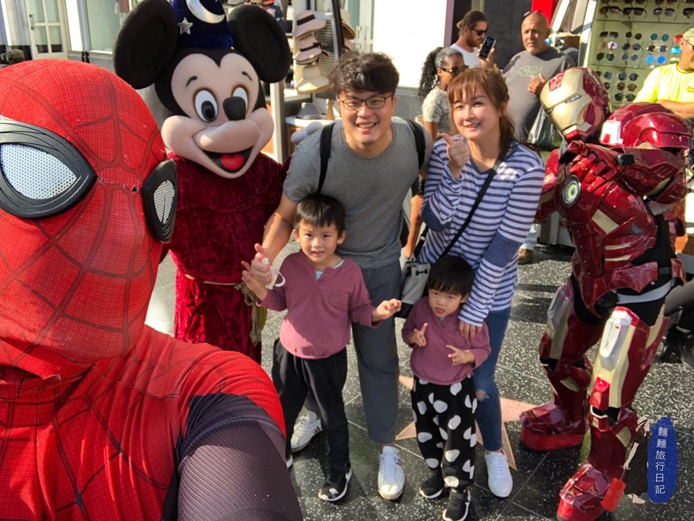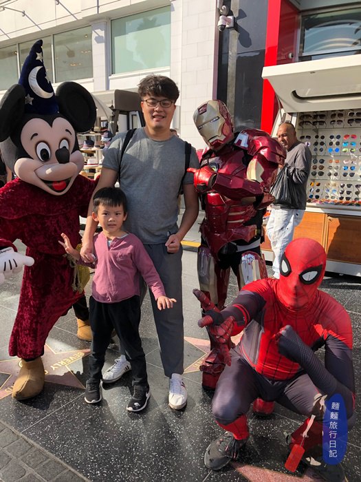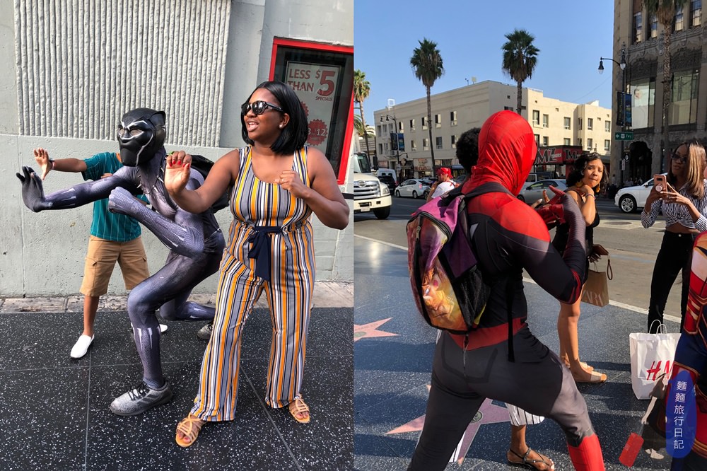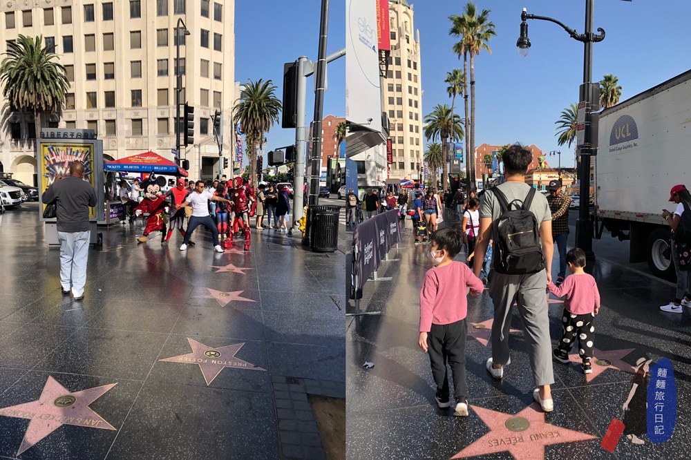 從Mall走出去馬路兩邊就是星光大道啦!星光大道上可是有2,600多顆星星鑲滿兩側馬路,一走出去你就會看到很多打扮的爭奇鬥豔、奇裝異服的街頭藝人虎視眈眈地在等著你🤣,等著你幹嘛?等你跟他合照收錢啊,有很多很用心打扮的,但是也有很多是打扮的超隨便、例如買個很便宜的角色服裝穿,沒有其他裝扮看你來就low low的,看了根本不想跟他合照,甚至還有穿很少露出兩顆屁股蛋的辣妹🤦♀波仔看到就一直問說為什麼她要不穿褲子XDDD