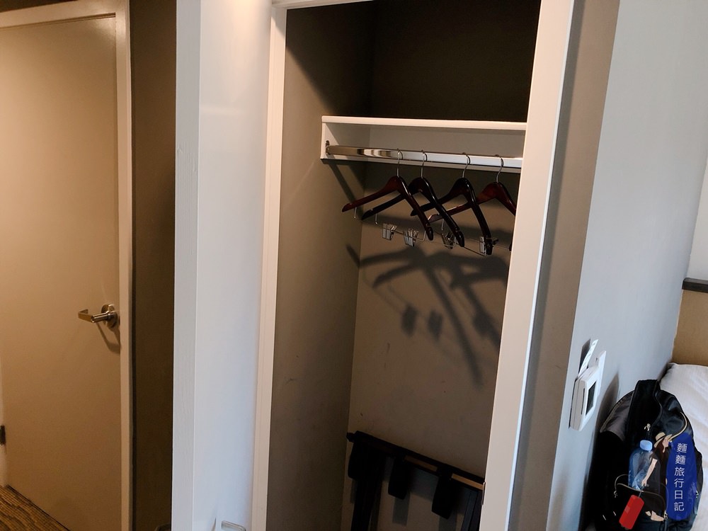 玄關進房之後旁邊有兩個門,一個是衣櫃跟放行李的地方。