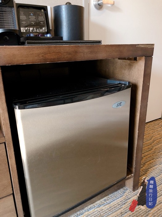 茶水櫃下有一咖小冰箱,房間裡面算是麻雀雖小,但五臟俱全,該有的都有喔。