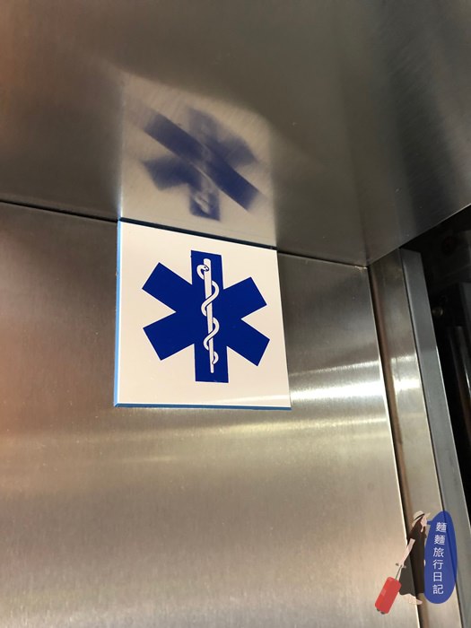 我一進電梯就發現,咦?!奇怪,電梯裡怎麼會有貼一隻蛇(歪頭)(困惑),抱歉村長孤陋寡聞、小時候社會公民讀不好,原來這是一個醫療標誌,名字是生命之星 Star of Life,原本的設計及決定是來自美國交通部屬下的美國國家公路交通安全管理局,在美國、香港、瑞士跟中華民國的救護車上都可以看到這個標誌;在國際上生命之星是表示急救單位或者人員,可見如果發生什麼緊急狀況,這間飯店也有完善的醫療救護措施,滿有保障的,看到這個標誌就覺得滿安心的。
