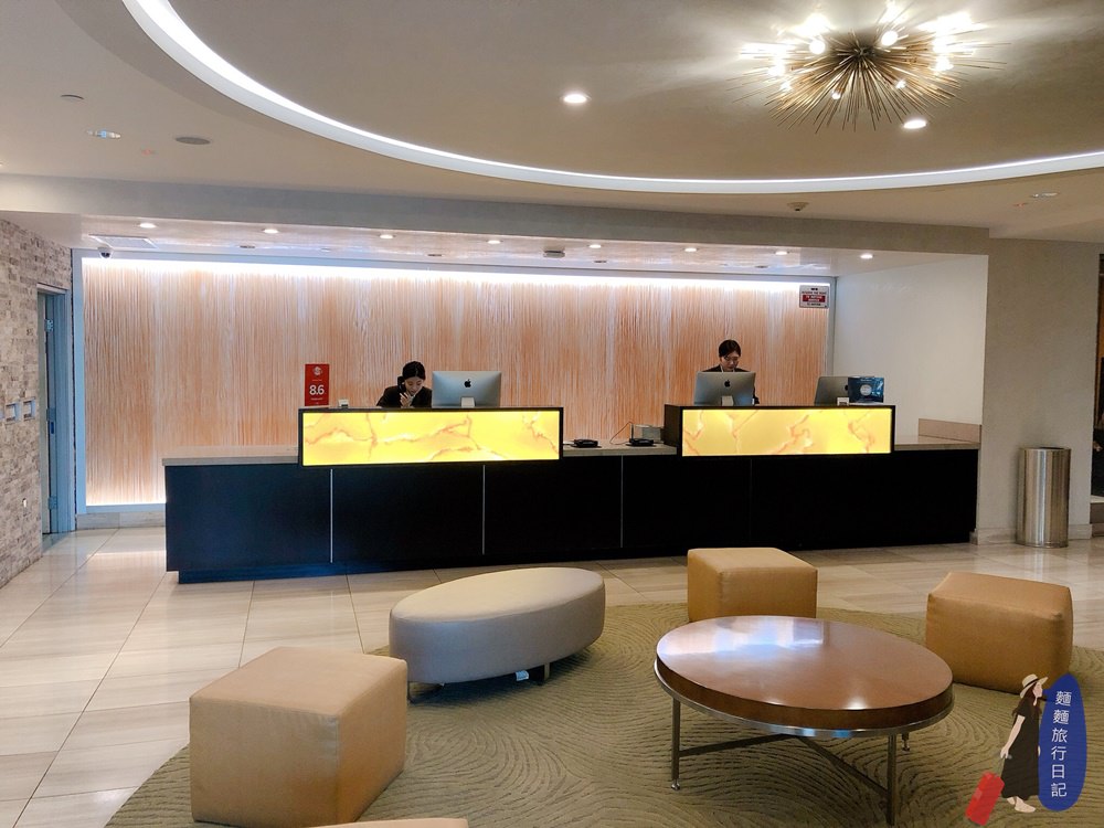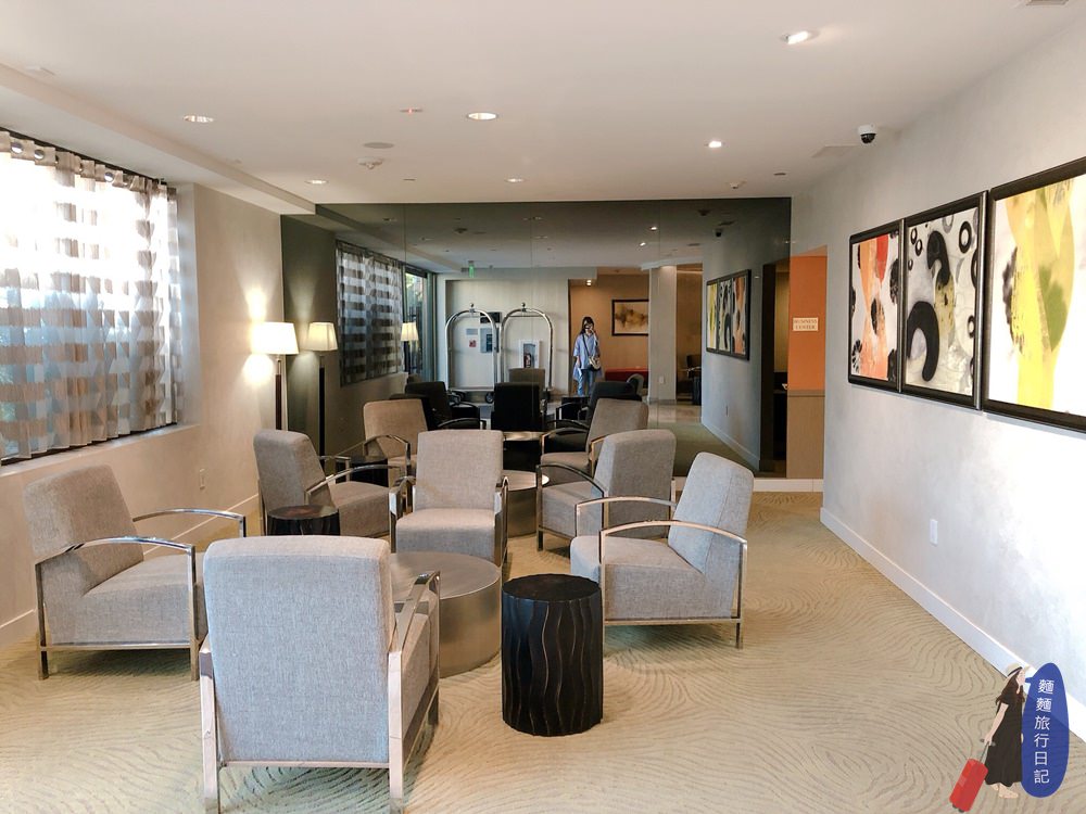我們從停車場搭電梯直達一樓櫃台辦理入住,阿文圖拉飯店的櫃台是24小時的服務櫃台,大廳雖然不大,但是很乾淨明亮,很像一般商務旅館的感覺,服務人員看起來都是韓國人一臉就是阿珠瑪、姨母跟歐尼的感覺,但是每一個都英文超好欸!太讓人混淆了,不知道到底是在韓國還是LA,真的是霧煞煞捏!後來上網查了一下這間飯店,發現飯店名稱 Aventura 是西班牙語,帶有冒險的意思,Aventura飯店的宗旨是成為一家簡單而實用的商務酒店,專為商務專業人士設計和量身定制,難怪我說有一種商務感,出差住這裡也很不錯耶!下班後旁邊就是酒吧餐廳,很方便啊!