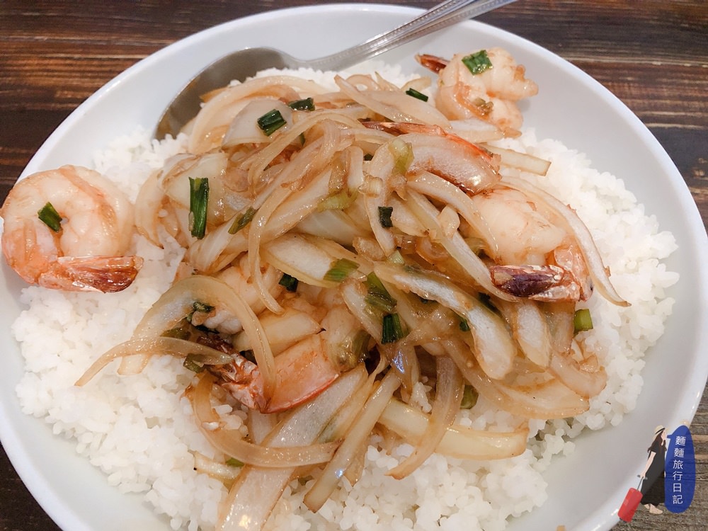 另外我們又點了一份蝦仁飯,用奶油炒洋蔥跟蔥花,再加入蝦仁一起炒到香香鹹鹹的這樣,然後淋在飯上~~~光是這樣形容就知道有多好吃了吧,味道大家應該很好想像的到,蝦子是那種尾巴帶殼的大蝦仁,很像Costco再賣的那種一大包尾巴帶殼的蝦子(會不會就是Costco買的😂),蝦子給很多隻,都滿大尾的,小朋友很愛。