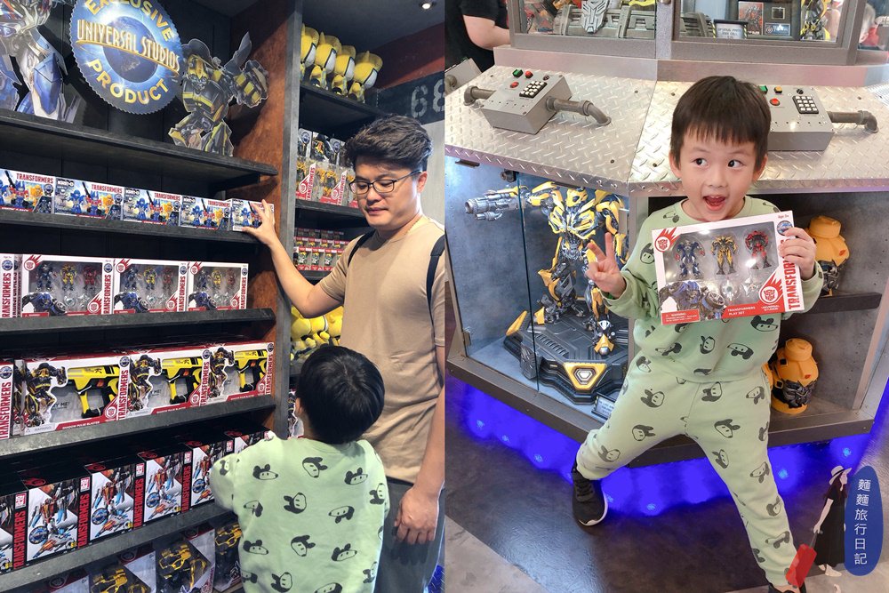 最後買個變形金剛的玩具做個收尾,雖然村長很想玩侏儸紀公園:激流湧進 Jurassic Park:The Ride (最低身高107cm),但是樂樂身高不夠,只好下次再來玩了,這次的環球影城體驗真的很棒很好玩很值得,上一次去大阪的環球影城波仔跟樂樂還小,能玩的項目更少!這次波仔跟樂樂都更懂得玩、更能玩了呢!而且遊客從亞洲臉孔變成外國人;語言也從日文跟中文變成英文,完全不一樣的感受,影城之旅 Studio Tour真的超好玩,我超級喜歡!整個好萊塢的設施其實都是以身歷其境、超擬真的概念下去設計,讓遊客好像真的走進真實的電影世界裡面呢!利用3D、4D虛擬實境,逼真得不得了~好玩到我都忘記自己昨天頭痛感冒的身體不適了!加州好萊塢環球影城必來啊!